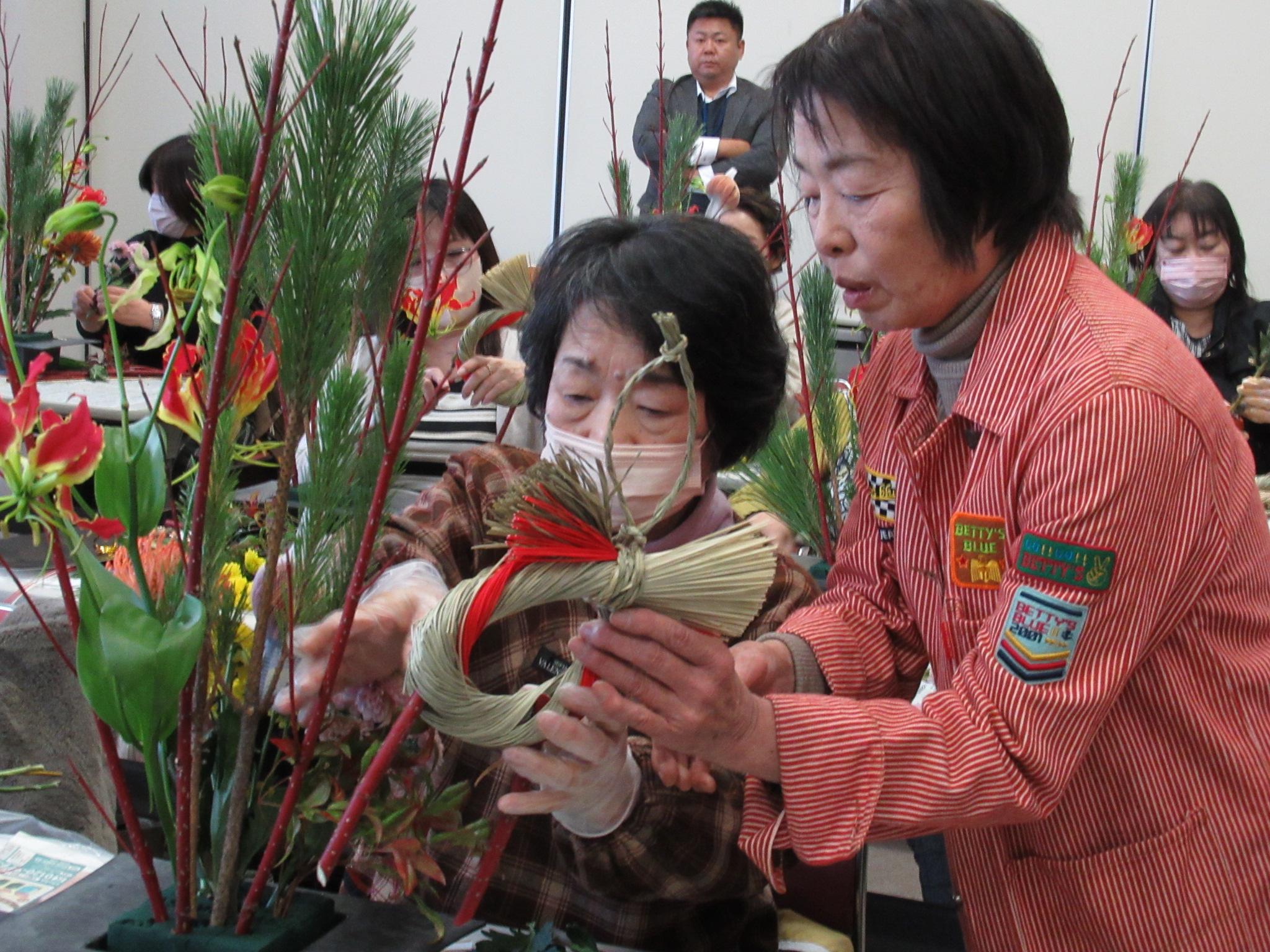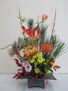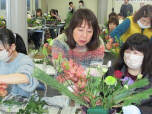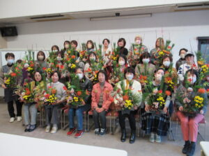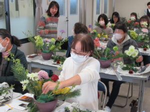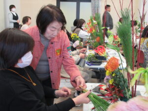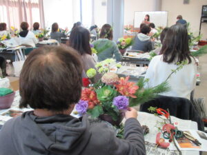 2024年12月22日(日)正月用フラワーアレンジメント教室を中津・宇佐の両会場で開催いたしました。中津会場は花結びの吉本佳代子先生、宇佐会場はフラワーショップすなたの砂田貞子先生